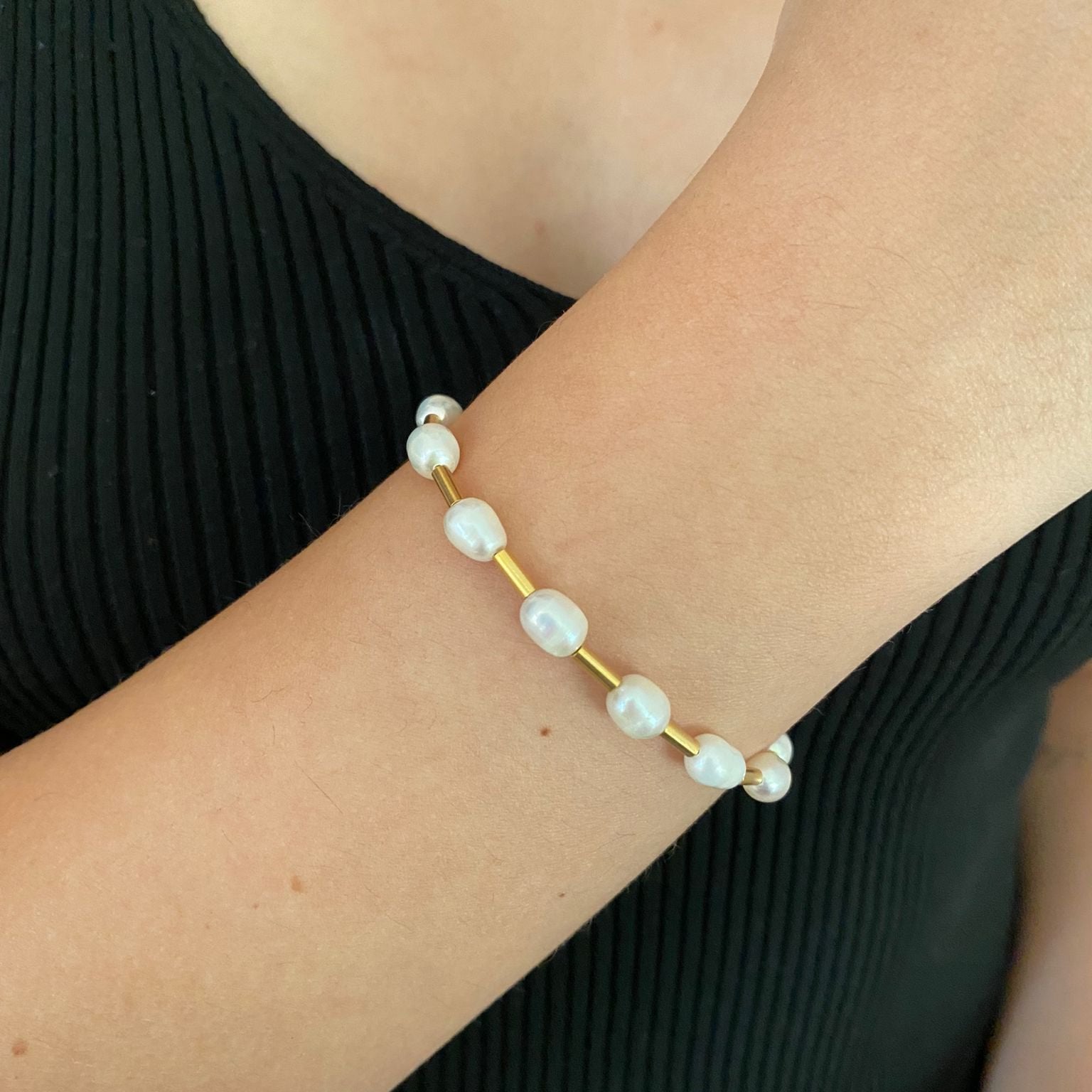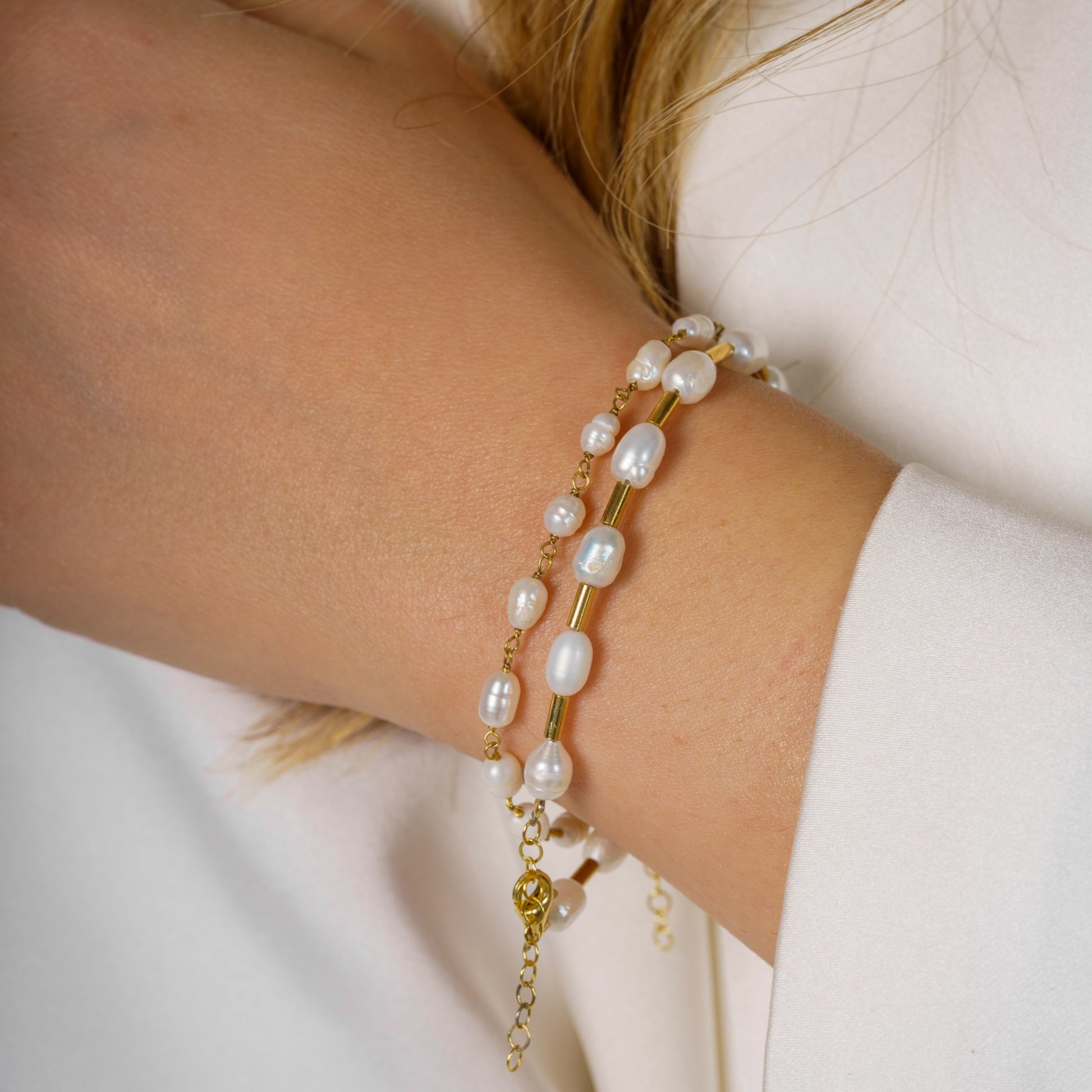 Aida Freshwater Pearl and Sterling Silver Bracelet - 14K Gold Plated