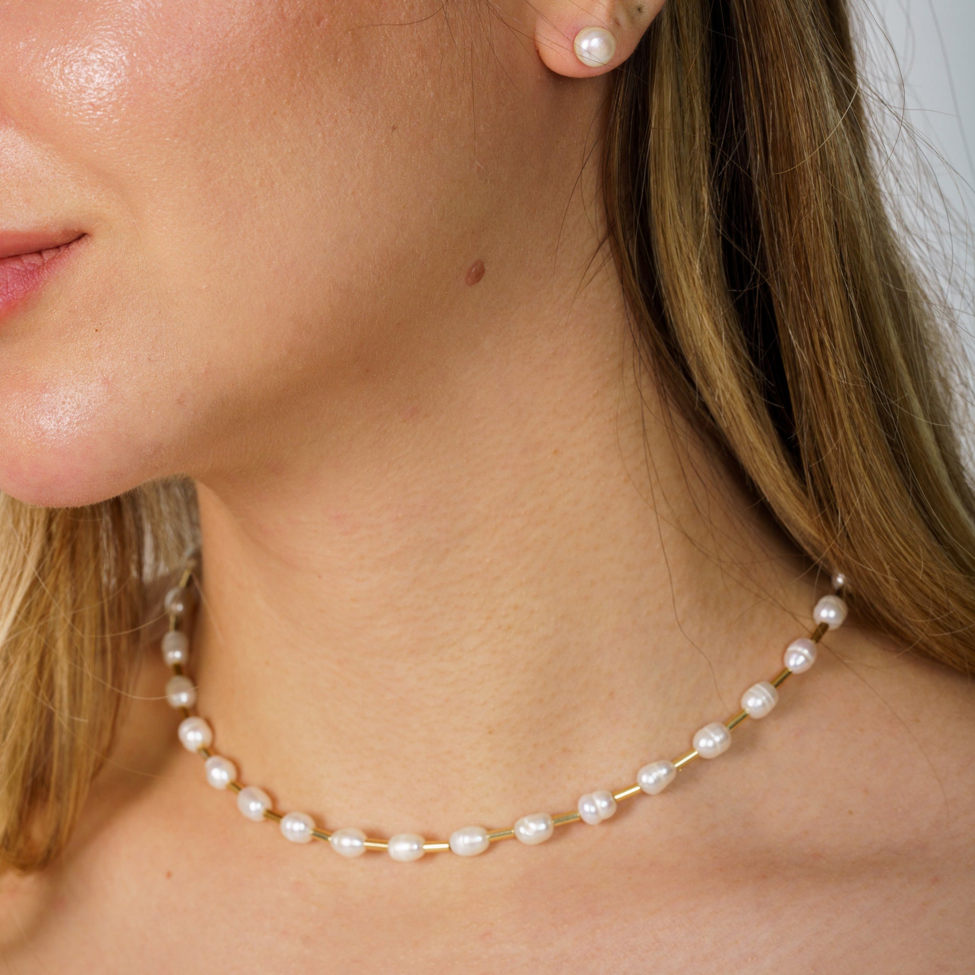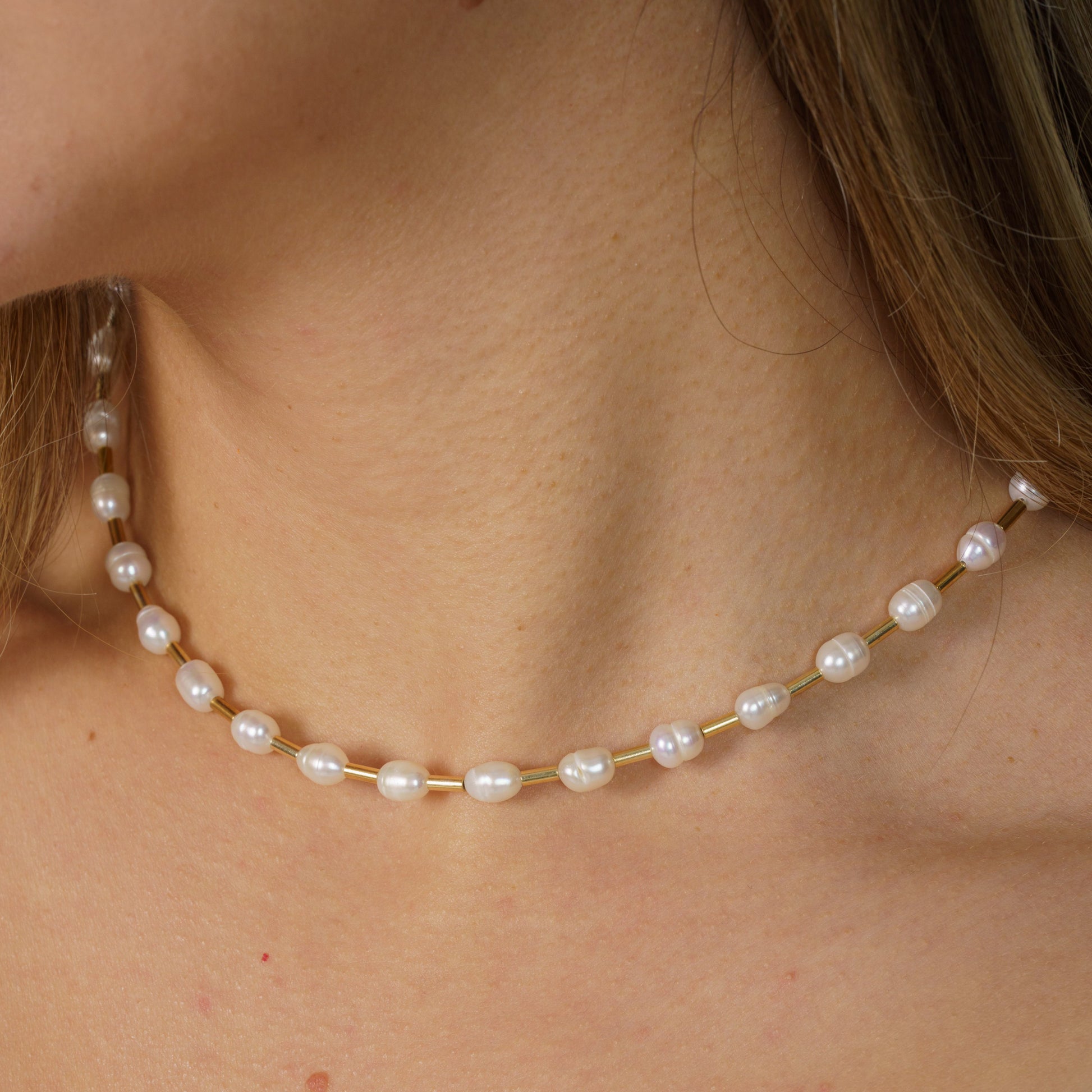Aida Freshwater Pearls and Gold Plated Silver Pipe Necklace