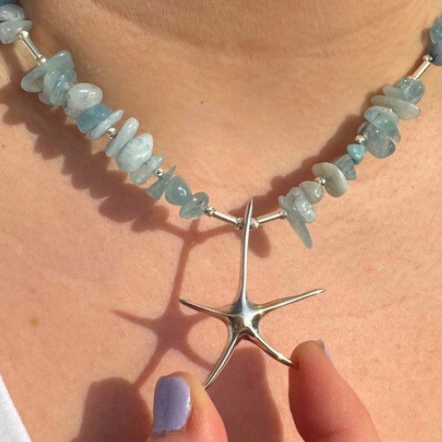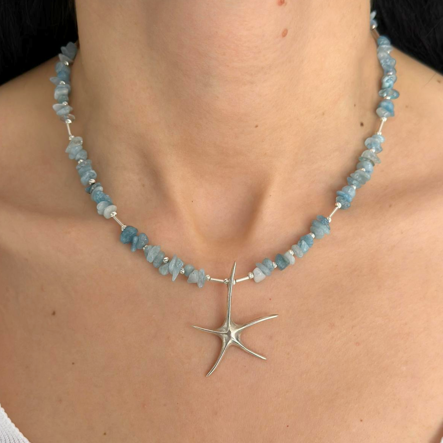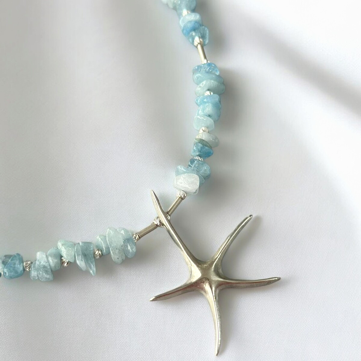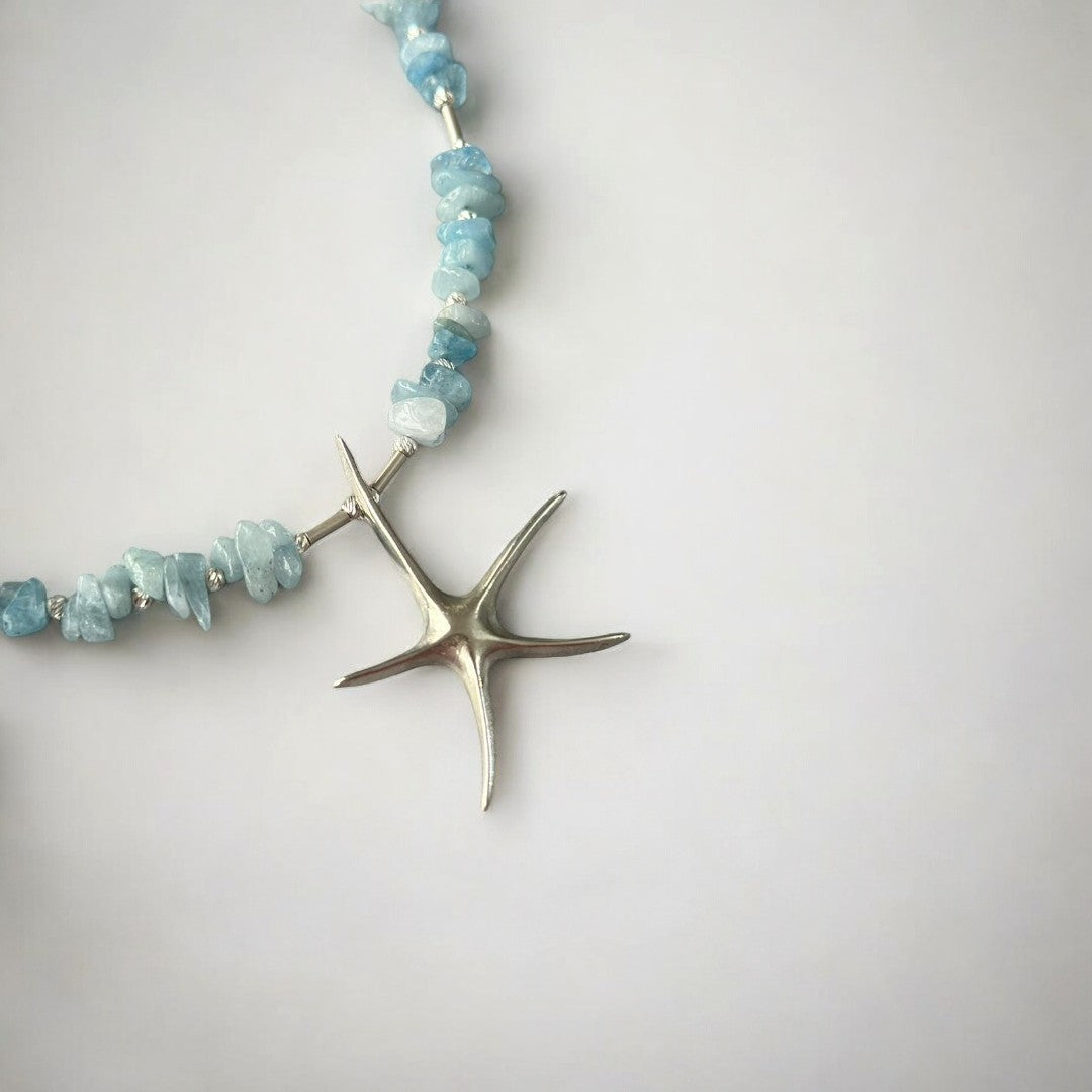 Aquamarine Starfish Necklace in 925 Silver - Handmade Elegance