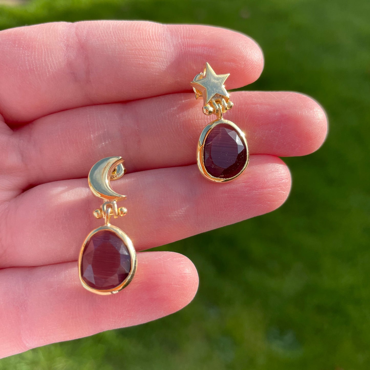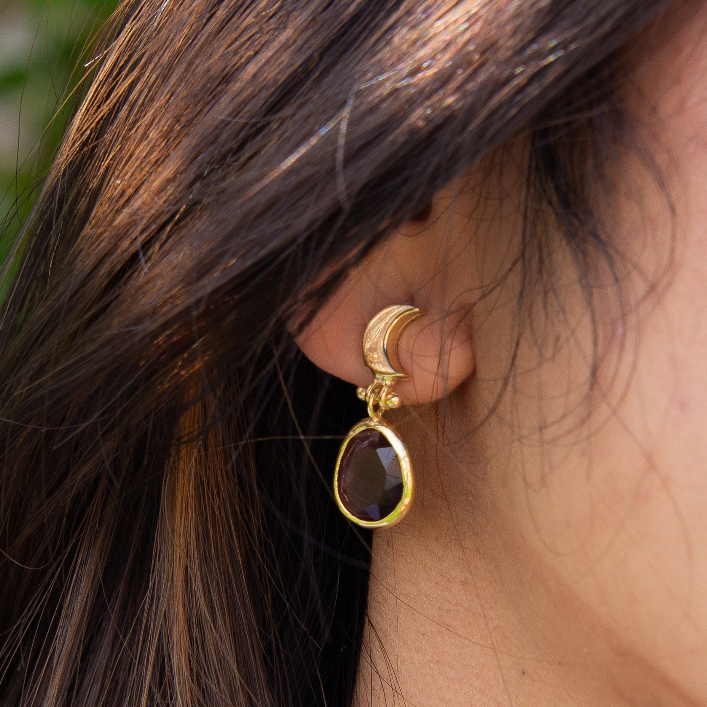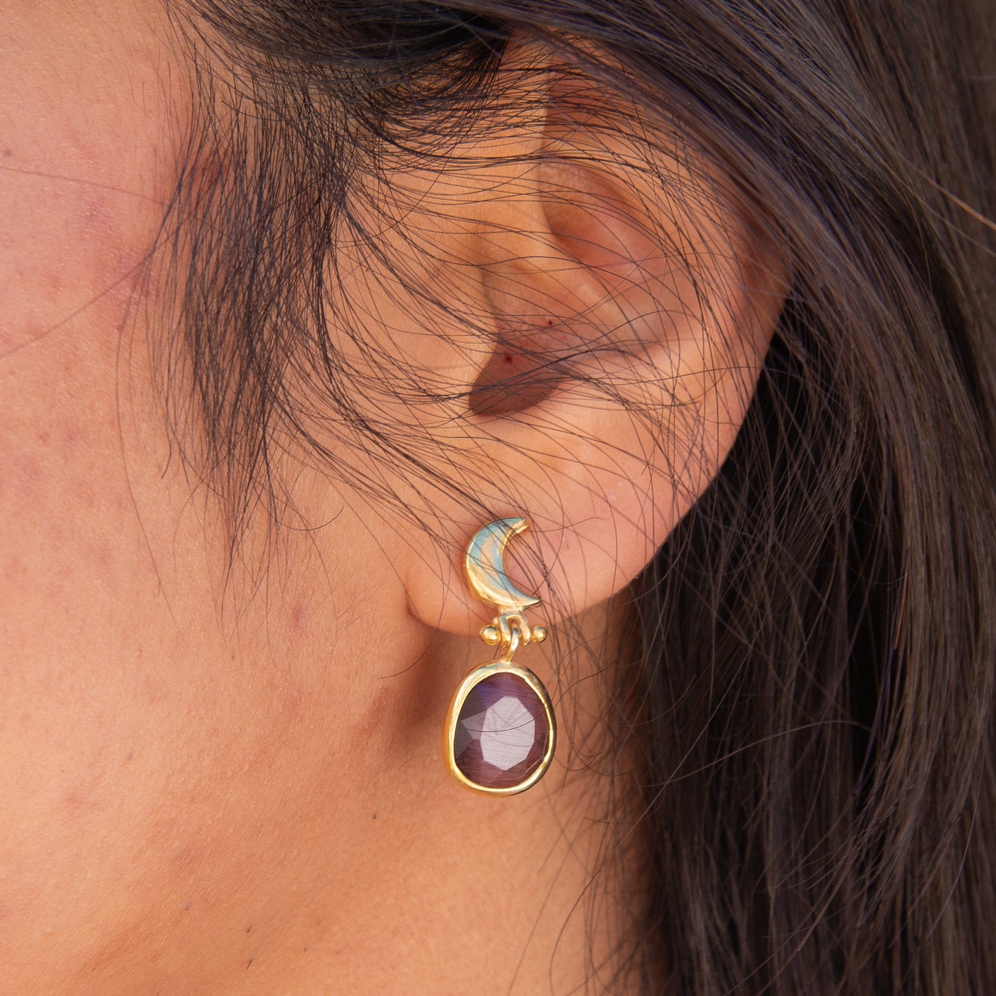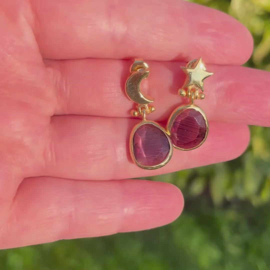 Moon and Star 925 Sterling Silver Purple Earrings 14K Gold Plated
