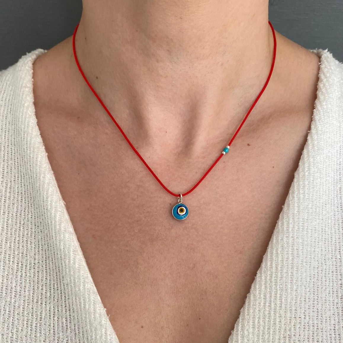 Experience the warmth and vibrancy of summer with the unique Handmade Evil Eye Red Cord Necklace. This carefully crafted piece is perfect for sunlit beach days and warm holiday evenings. The intricate evil eye glass pendant is not just a stylish addition; it symbolises good luck and positivity, making this necklace a perfect companion on your summer adventures. The durable red fabric cord has been chosen for its resilience and its bright contrast with the pendant, enhancing its charm. Its adjustable design, featuring a sliding knot closure, offers flexibility to match any summer outfit, whether you're dancing on the beach or enjoying a holiday get-together. Wear it daily or save it for those treasured moments when you want your accessories to shine as brightly as the summer sun. Handmade with dedication, this necklace combines exceptional artistry and a keen eye for detail. Each necklace is individually crafted to order, ensuring top-notch quality. Treat yourself to an authentic design that speaks to those who appreciate meaningful jewellery, perfect for relaxed daytime looks or dressier evening ensembles during your summer holidays. This necklace makes a wonderful gift for any sun lover. It pairs beautifully with summer dresses, swimsuits, and casual holiday wear, offering a touch of elegance and a story to tell. Show someone special just how much they mean to you with an exclusive jewellery piece that captures the spirit of summer and the essence of protection and positivity.