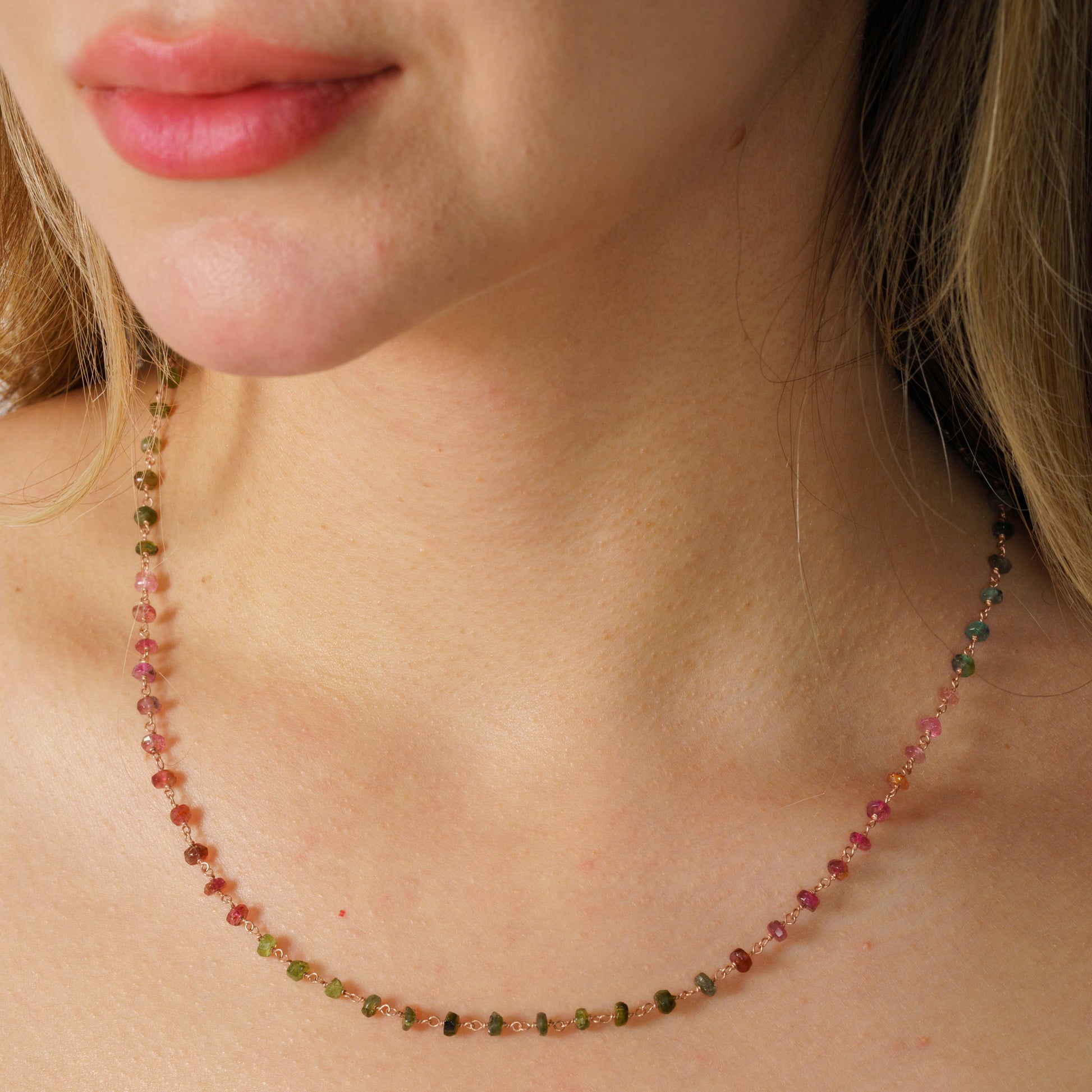 Dainty Multicolour Tourmaline Gemstone Chain Necklace