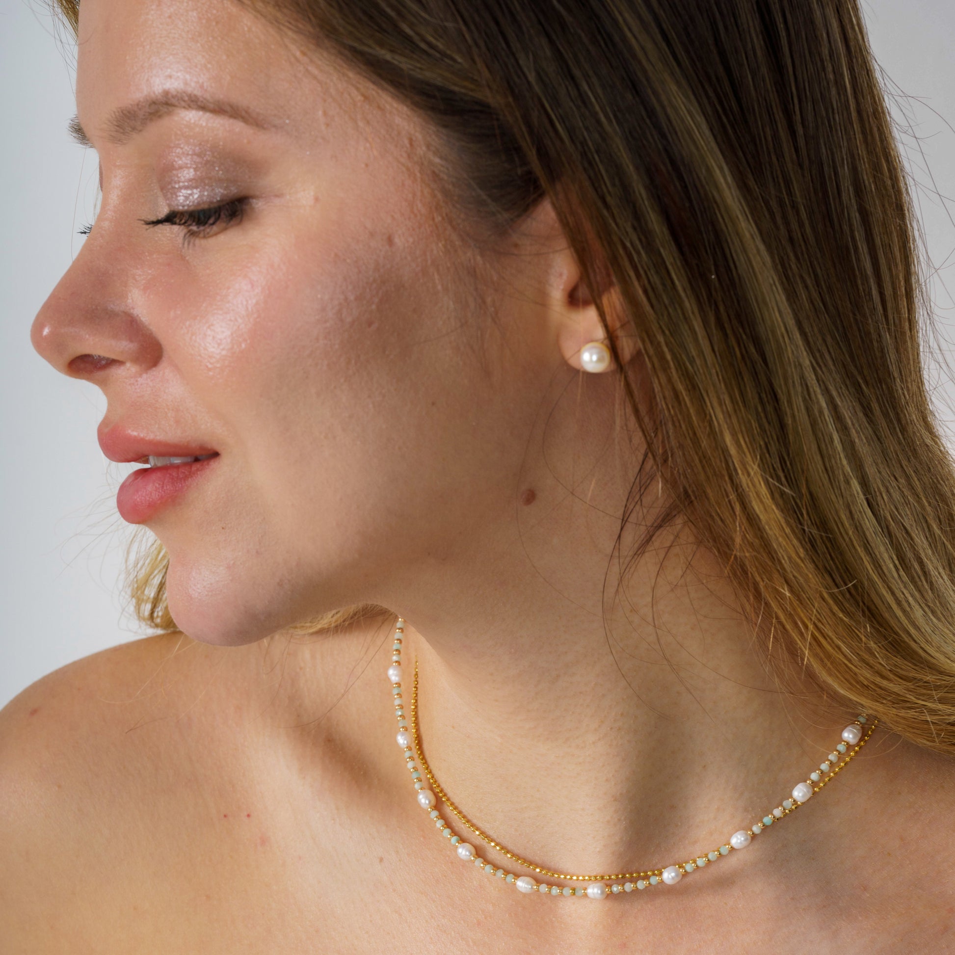 Embrace sun-kissed adventures with our Minimalist Freshwater Pearl and Blue Apatite Necklace—a summer statement that encapsulates the essence of beachside tranquillity and endless holiday nights. This delightful piece of summer jewellery merges the soft, luminous freshness of freshwater pearls with the oceanic allure of blue apatite gemstones, perfect for those dreamy sunset walks along the beach. Crafted with care, the necklace features 925 sterling silver and is adorned with 14K gold-plated beads and findings, radiating a warm glow against sun-kissed skin. The design, complete with a secure lobster claw clasp and an adjustable chain (40 cm plus an extended 4 cm), ensures a customised fit for relaxed summer days and cool, breezy evenings. Celebrate every cherished summer moment with its seamless blend of beauty and durability. This summer necklace is not just an accessory—it's a badge of elegance meant to sparkle under the summer sun. Whether you're gifting it to a loved one for a summer birthday or as a treat for yourself on your holiday getaway, its simple design, paired with nature’s finest gems, adds that perfect touch of style to sundresses, swimsuits, or evening attire. Let it be your companion through every joyful splash and serene sunset. Elevate your summer wardrobe with this timeless piece. Its classic design and thoughtful features are the essence of enduring elegance, perfectly suited to today's trends and the timeless beauty of the season. Carve out beautiful memories all summer long with jewellery that resonates style and sophistication, a true gem for the holiday season.