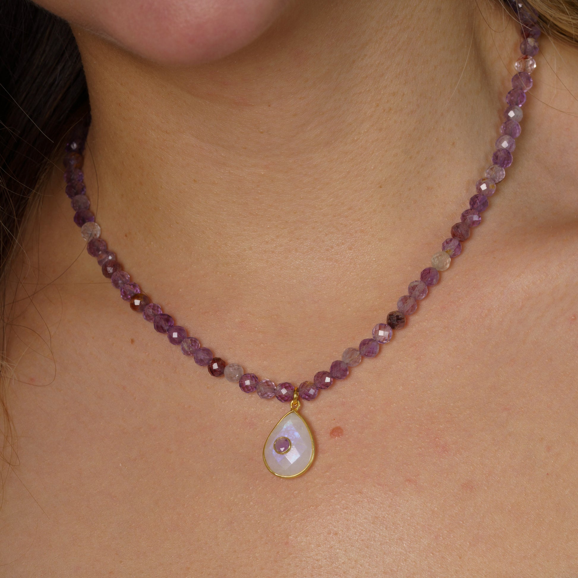 Gemstone Necklace with Moonstone and Amethyst Pendant