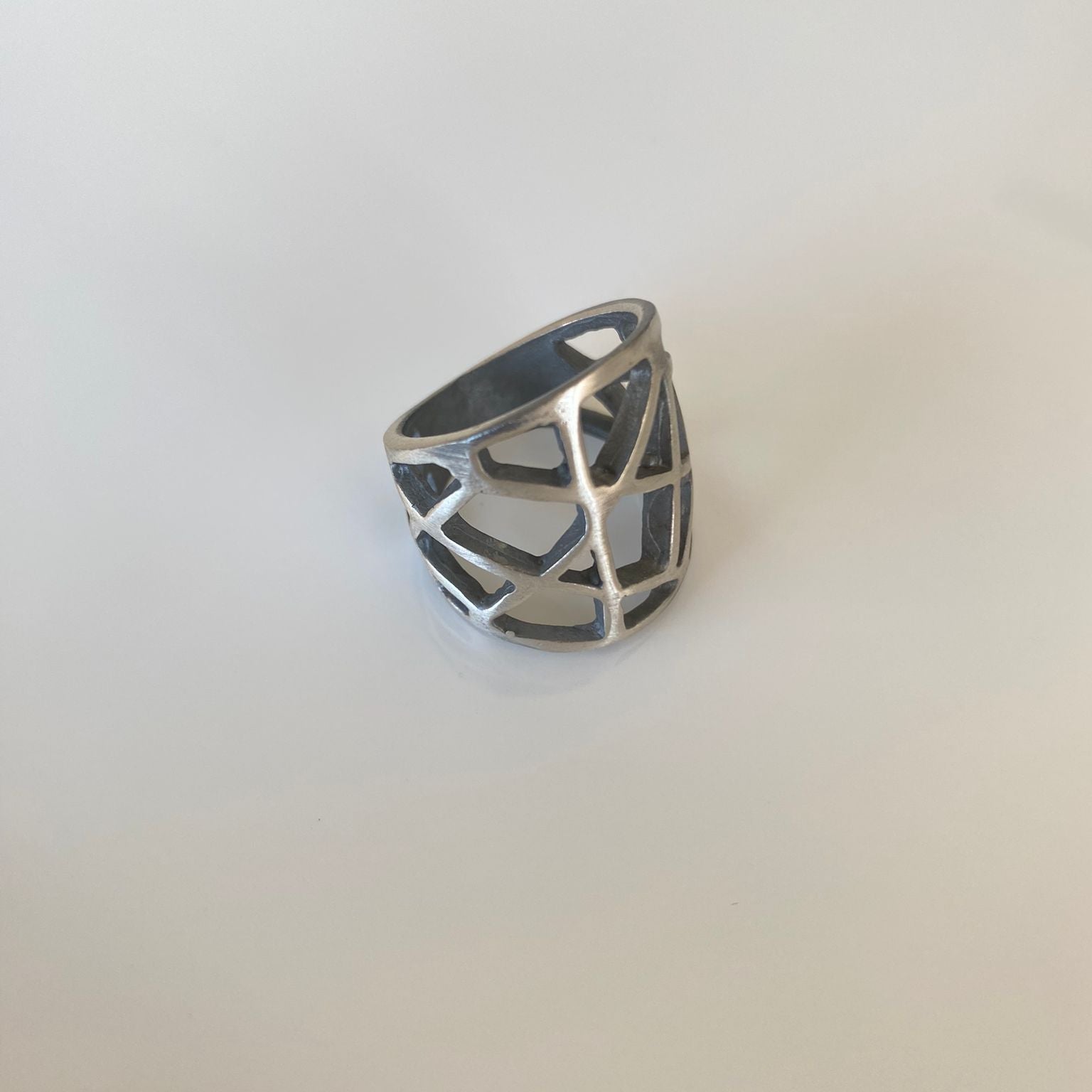 Embrace the art of contemporary elegance with our Geometric Silver Ring. Handcrafted with the utmost precision, this chunky silver ring provides a bold yet sophisticated style statement. Its geometric design seamlessly blends modern aesthetics with the timeless allure of a sterling silver ring, creating a visually striking accessory for any occasion.