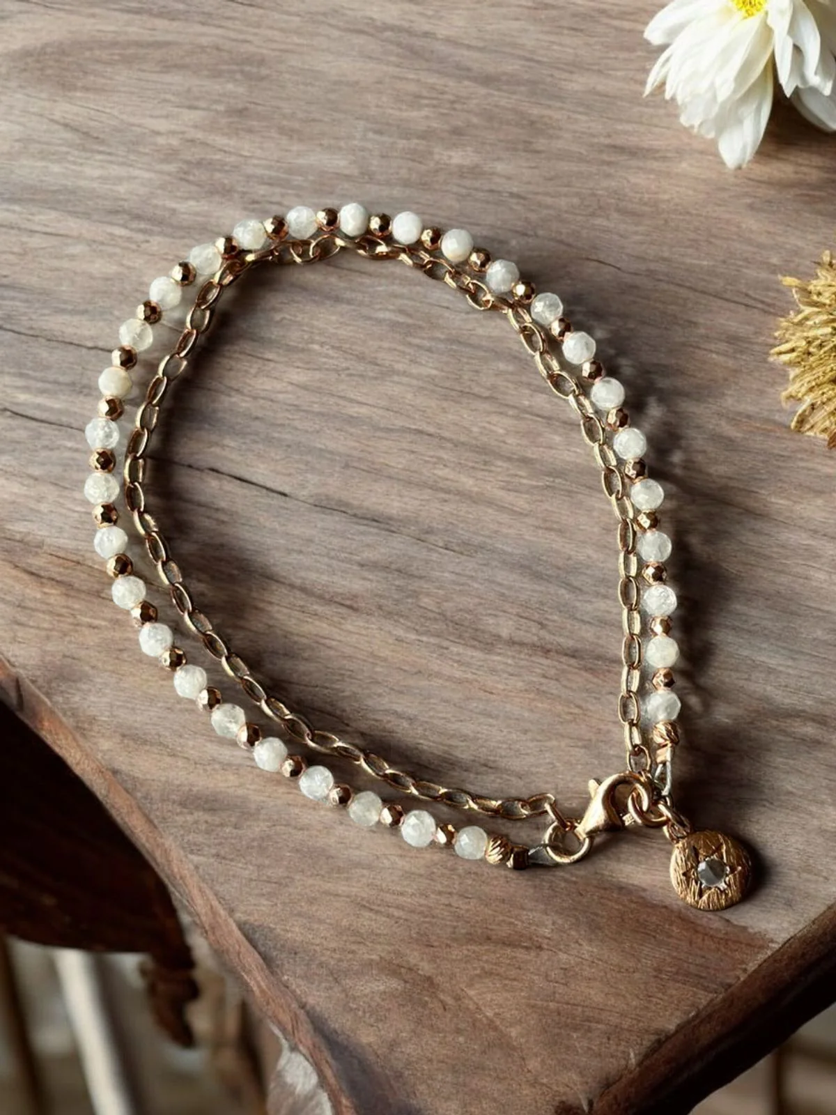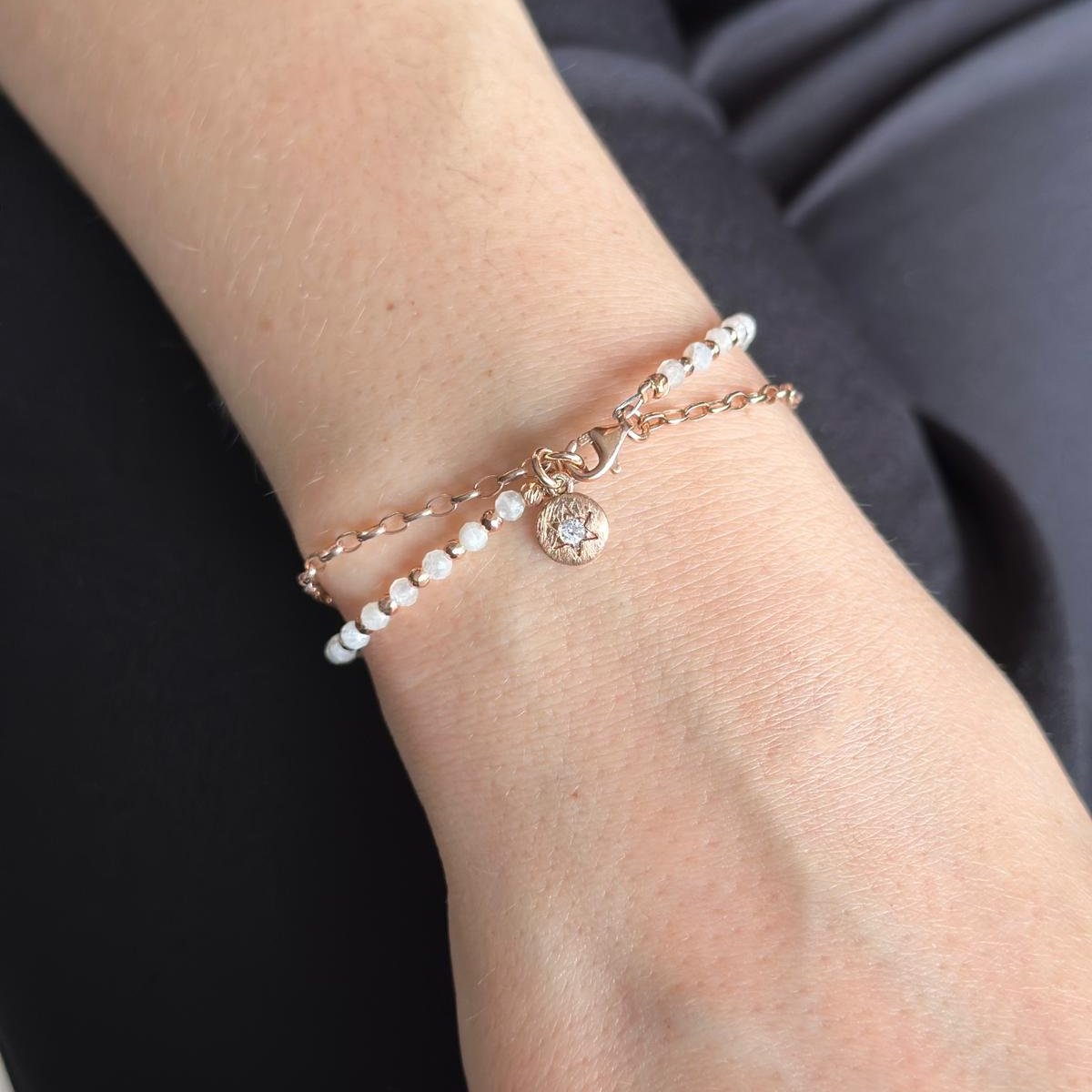 Handcrafted Moonstone & Hematite Star Bracelet in Rose Gold