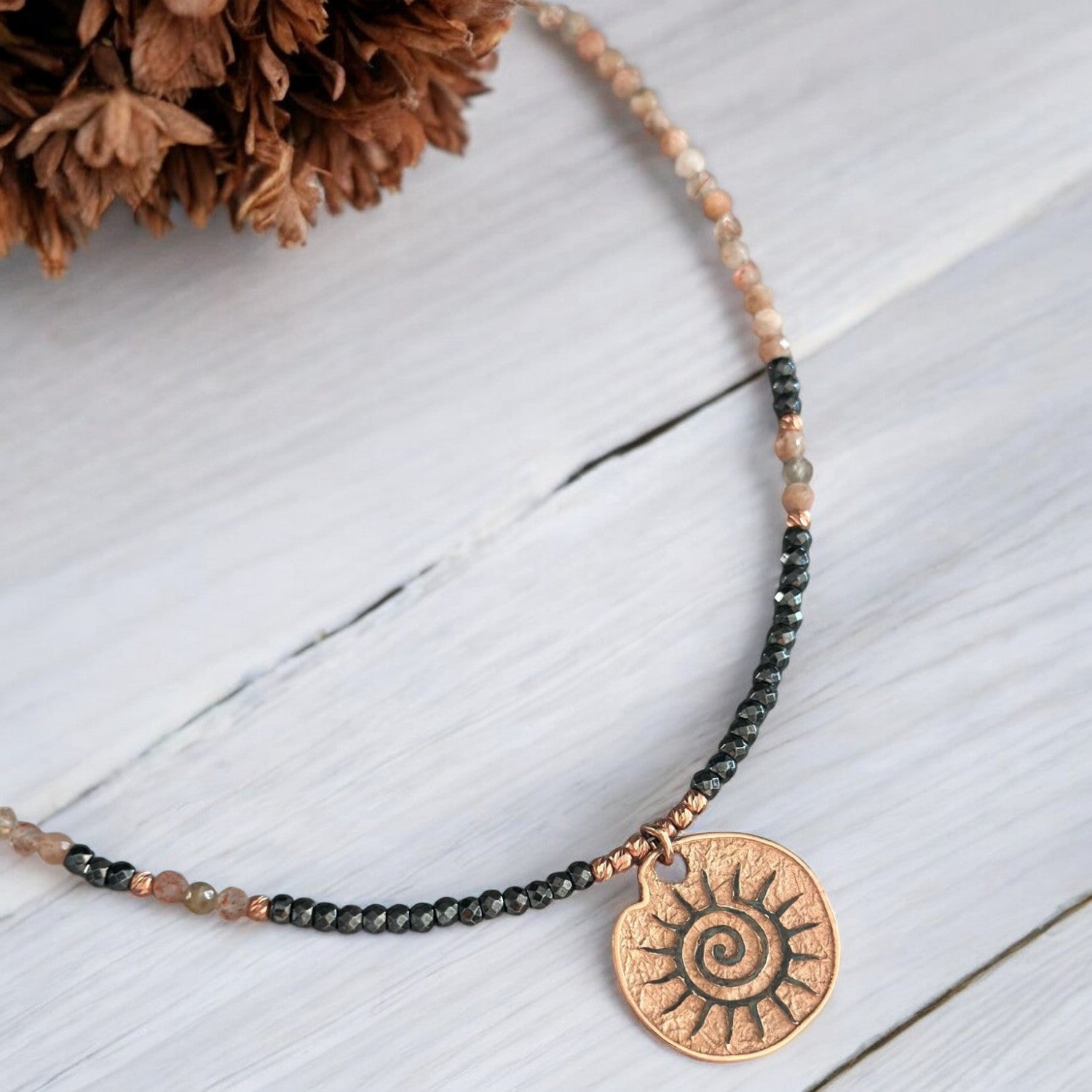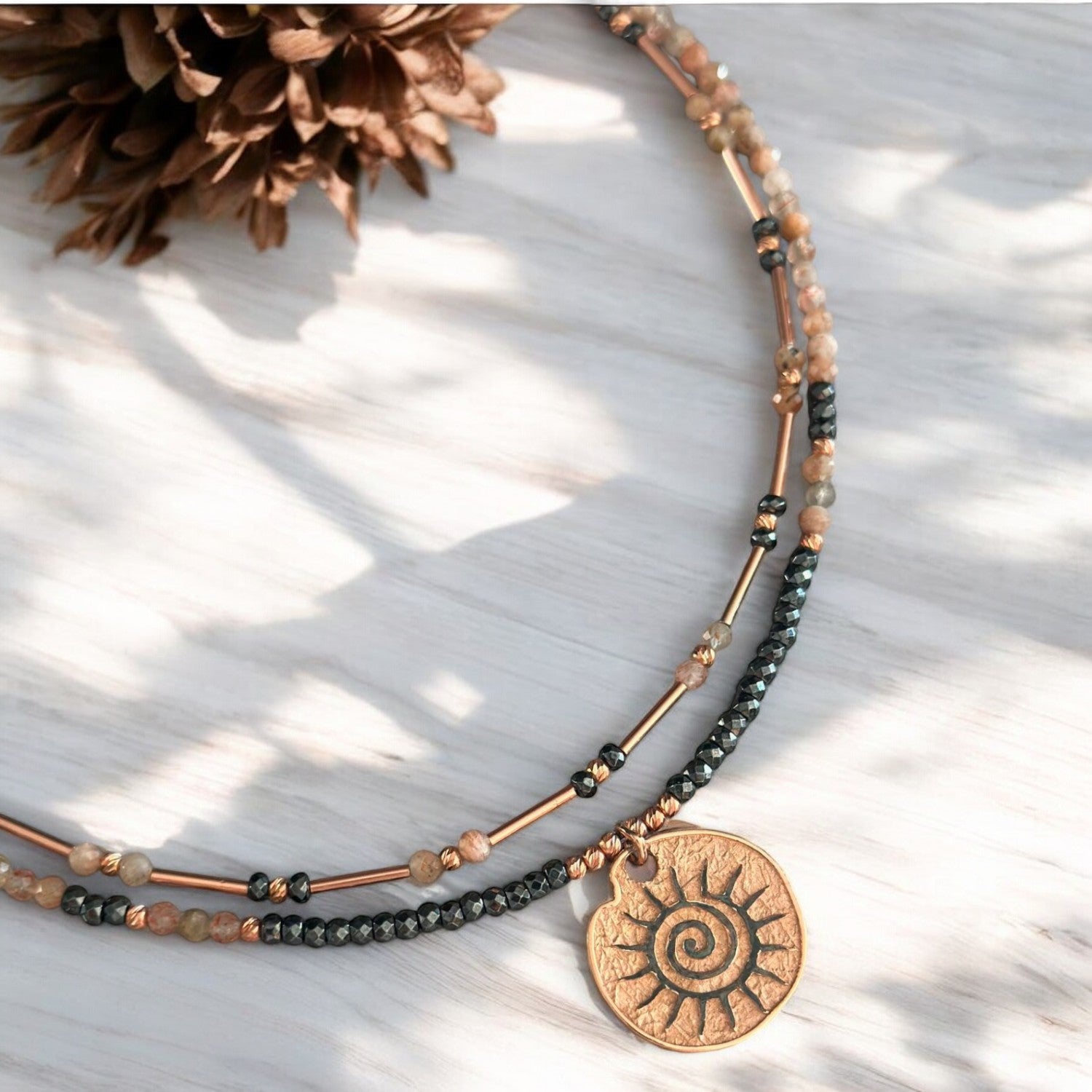 Sunstone and Hematite Gemstone Sun Necklaces Set