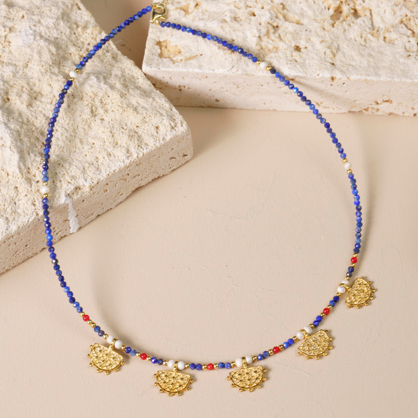 - Materials: 925 Sterling Silver, Lapis Lazuli, Coral, Freshwater Pearls.