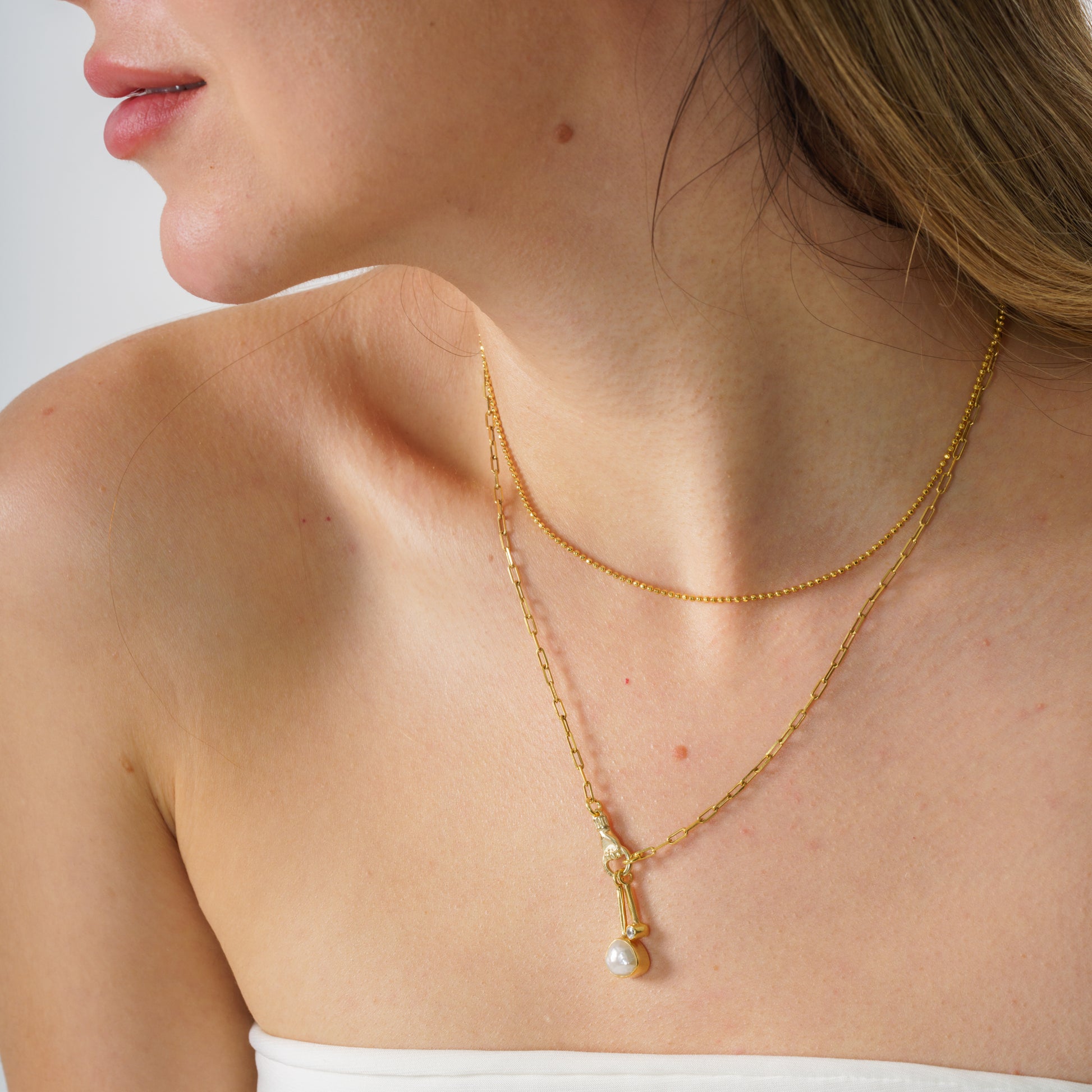 Holding Pearl Gold Plated 925 Sterling Silver Necklace