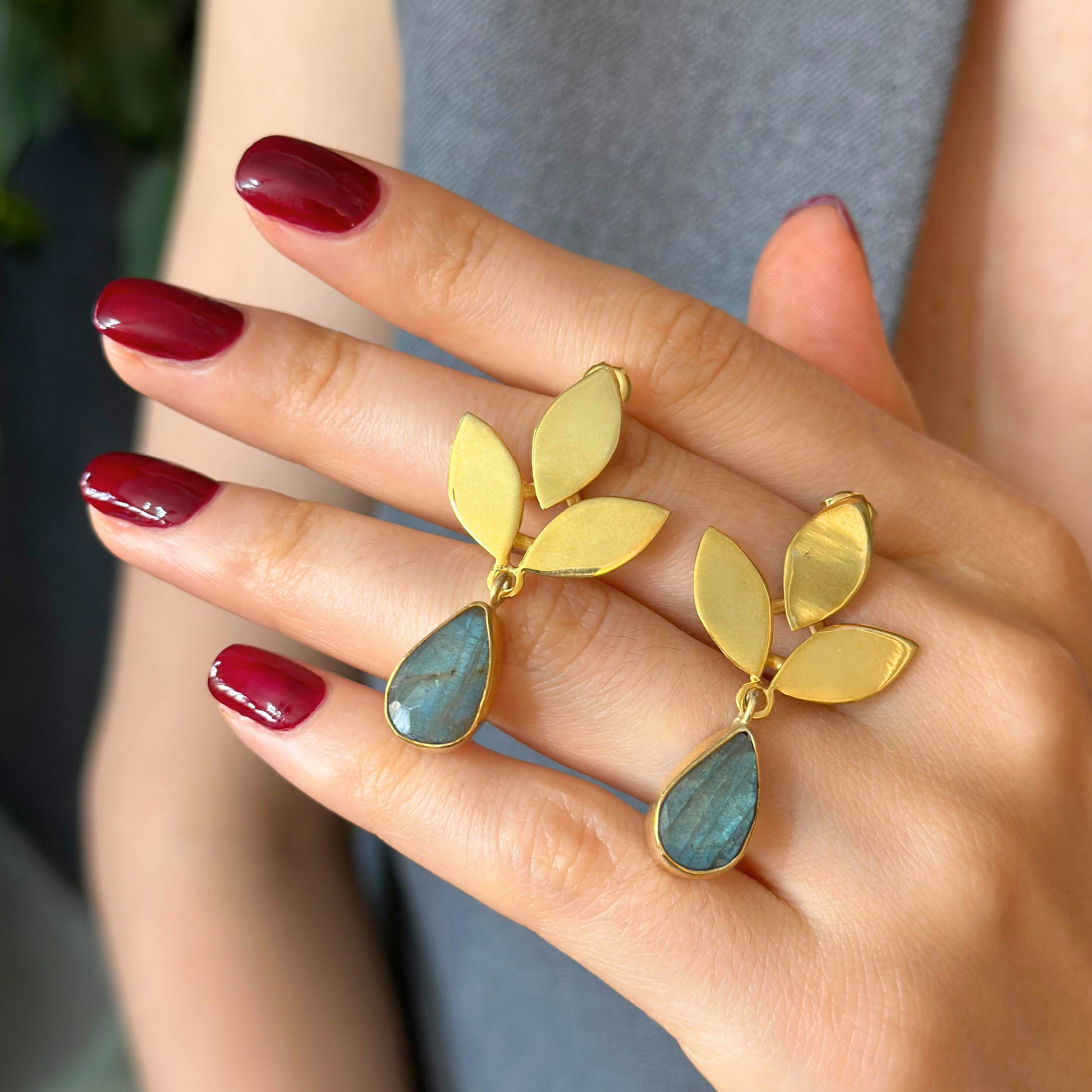 The incorporation of dainty gemstones in each earring design evokes the radiant beauty of nature. Due to their handcrafted origins, each pair showcases meticulous attention to detail and a hint of uniqueness. If you're looking for flower earrings that leave a lasting impression, the Labradorit Silver Dangle Drop Earrings are your perfect choice.