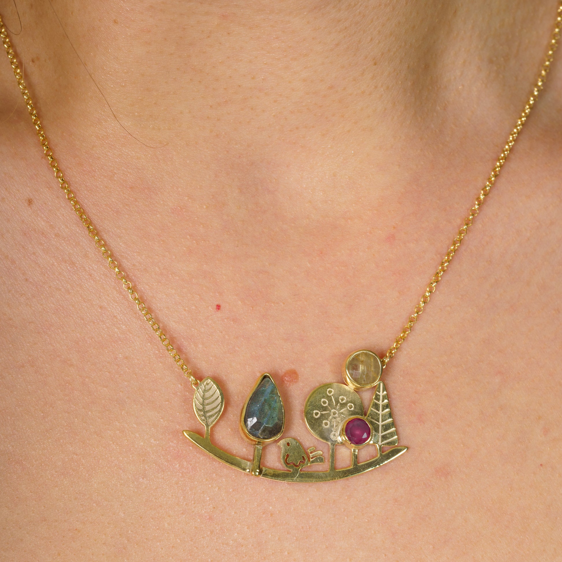 Dive into a summer dream with our Minimalist Gold Plated Necklace, beautifully capturing the essence of warm, sun-kissed days by the sea. This holiday jewellery piece is crafted to add a touch of coastal elegance to your collection, reflecting the serene beauty of beach landscapes. With its mix of labradorite, quartz, and garnet gemstones, it mirrors the calming colours of a sunset over gentle waves, making it a perfect addition to your summer jewellery selection. The necklace features a stunning 925 sterling silver chain with rich 14K gold plating, creating a warm glow reminiscent of golden sands. The labradorite, rutile quartz, and garnet set within the pendant offer a captivating spectrum of colours, perfect for those who love to embrace the vibrant spirit of summer holidays. This enchanting necklace truly embodies the essence of leisurely beach days and balmy nights. Designed with summer style in mind, the necklace combines a classic yet modern feel. Its adjustable 40 cm chain, extendable to 44 cm, ensures it fits comfortably, while the reliable silver lobster claw clasp provides secure closure. Wear it during sunny day trips or evening seaside dinners, as its practicality makes it suitable for everyday wear or special summer events. This necklace is an ideal gift for summer birthdays, anniversaries, or just as a thoughtful gesture. Whether you're dressing up for a beach party or looking for a versatile layer for your summer outfits, this piece allows you to celebrate sunny moments in style. Effortlessly pair it with your breezy holiday wardrobes or layer it with other pieces for a chic festival look, ensuring you make the most of your sunny season.