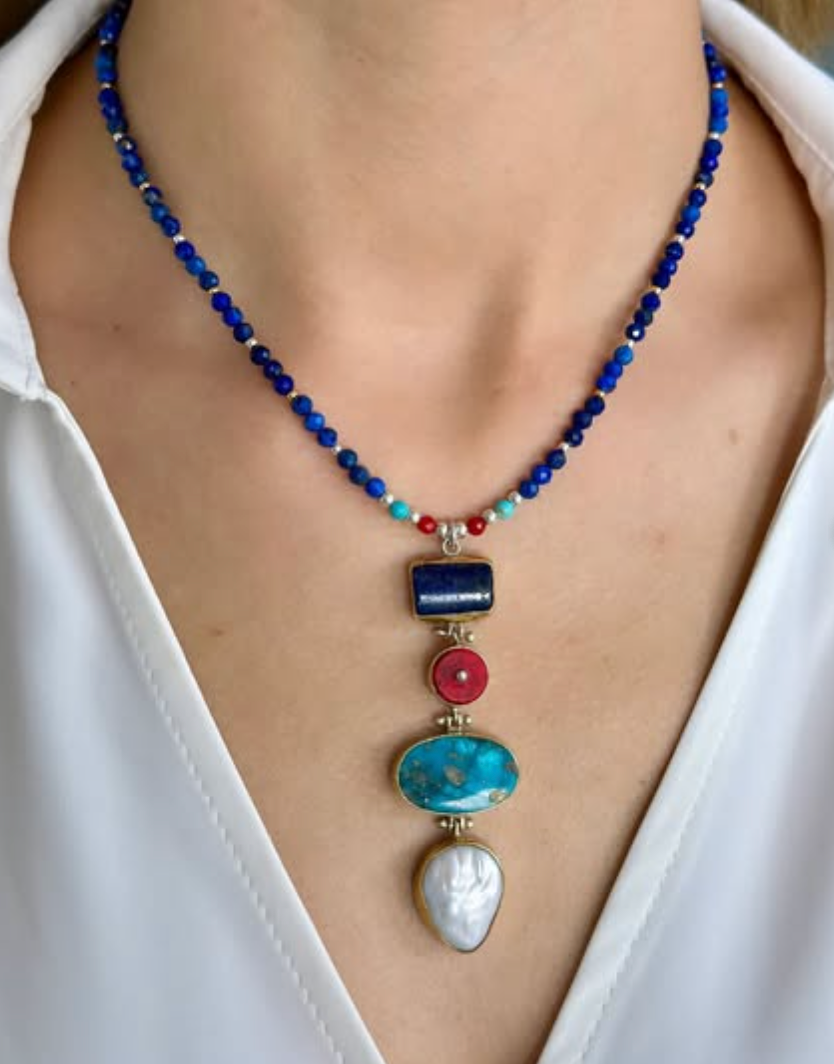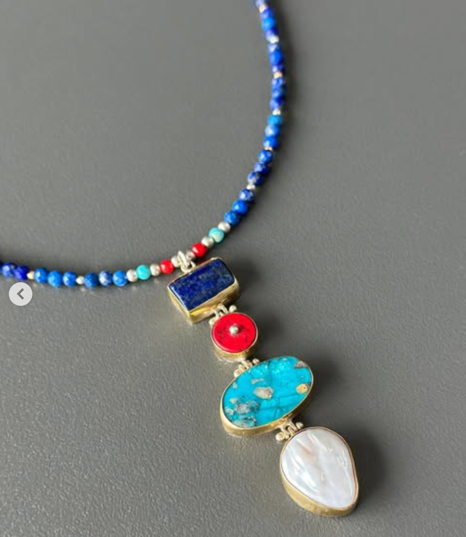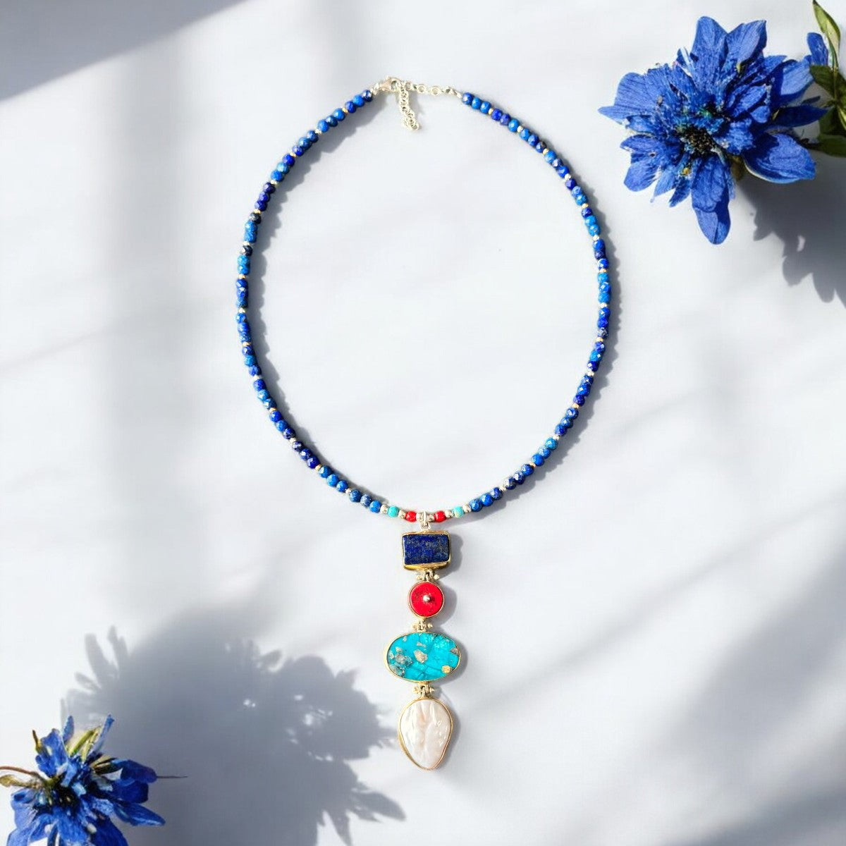 Lapis Lazuli, Coral, Turquoise Gemstone Necklace