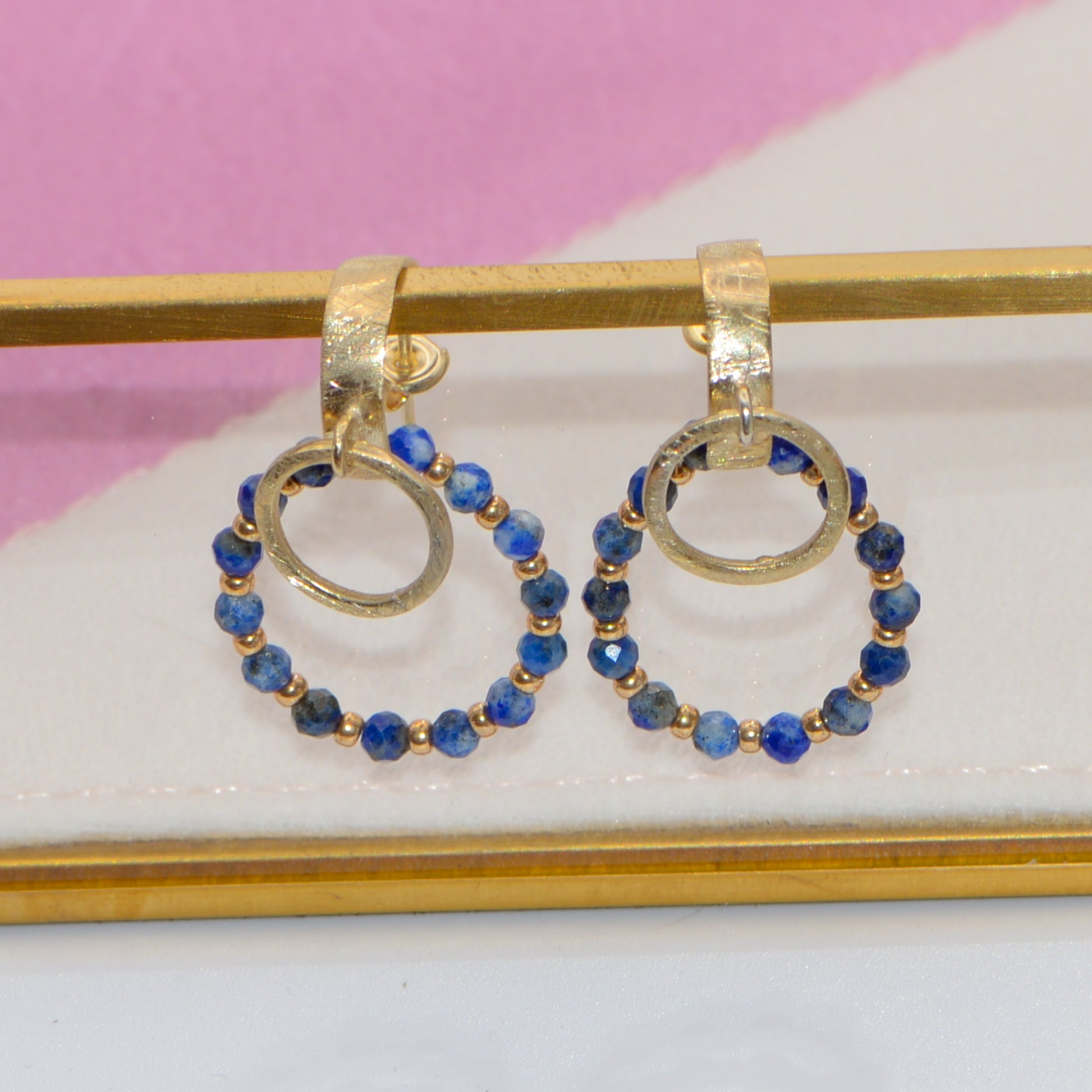 Lapis Lazuli Drop Earrings in Sterling Silver Gold Plated