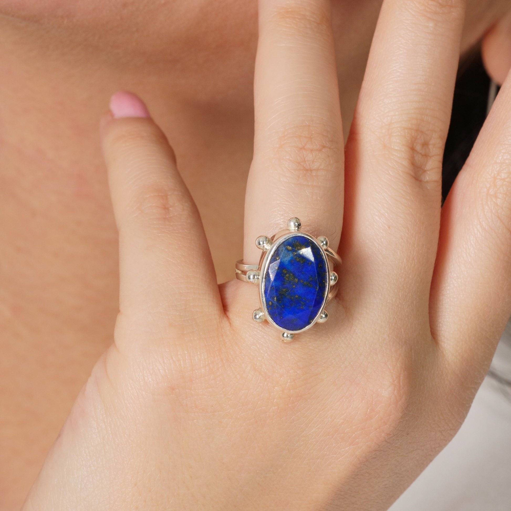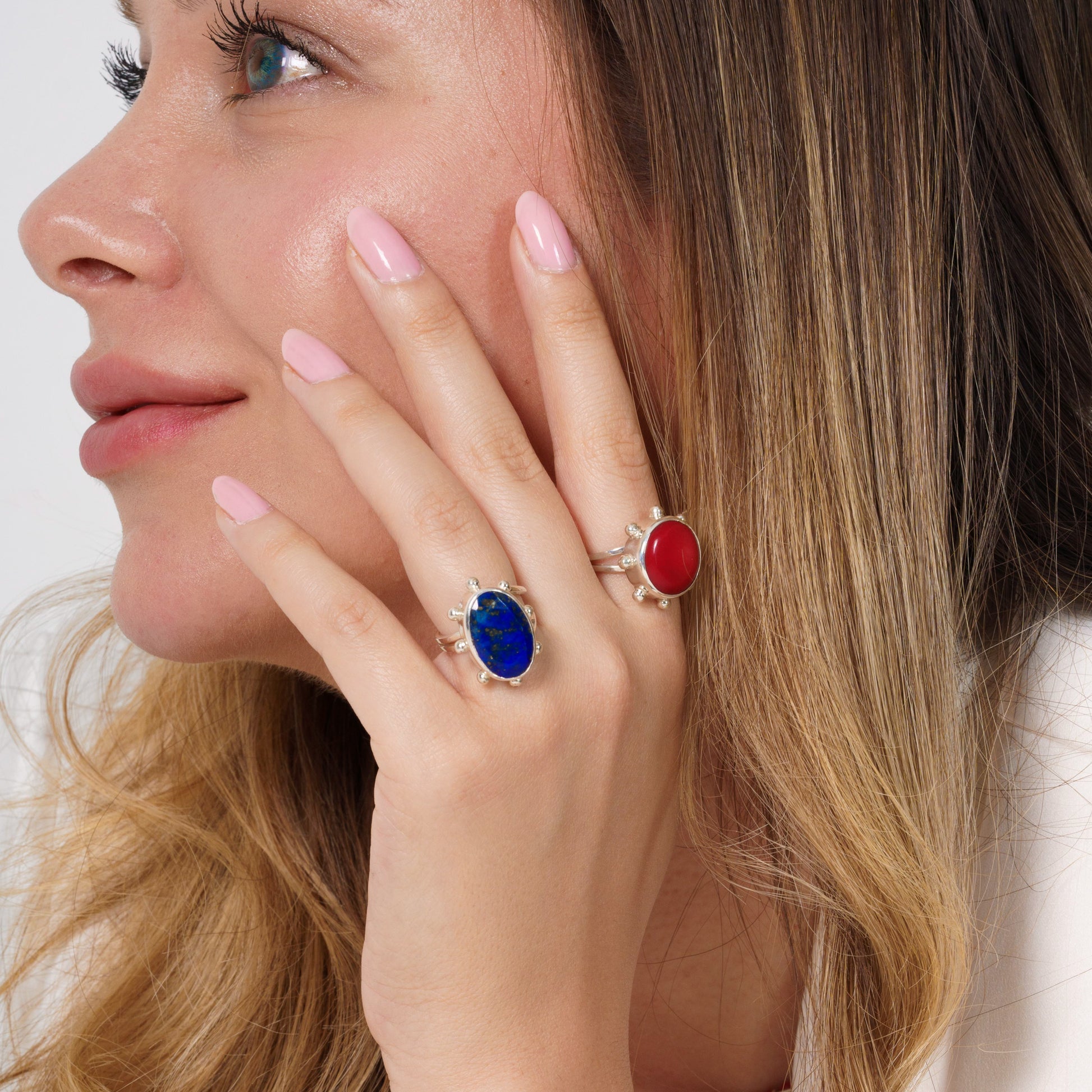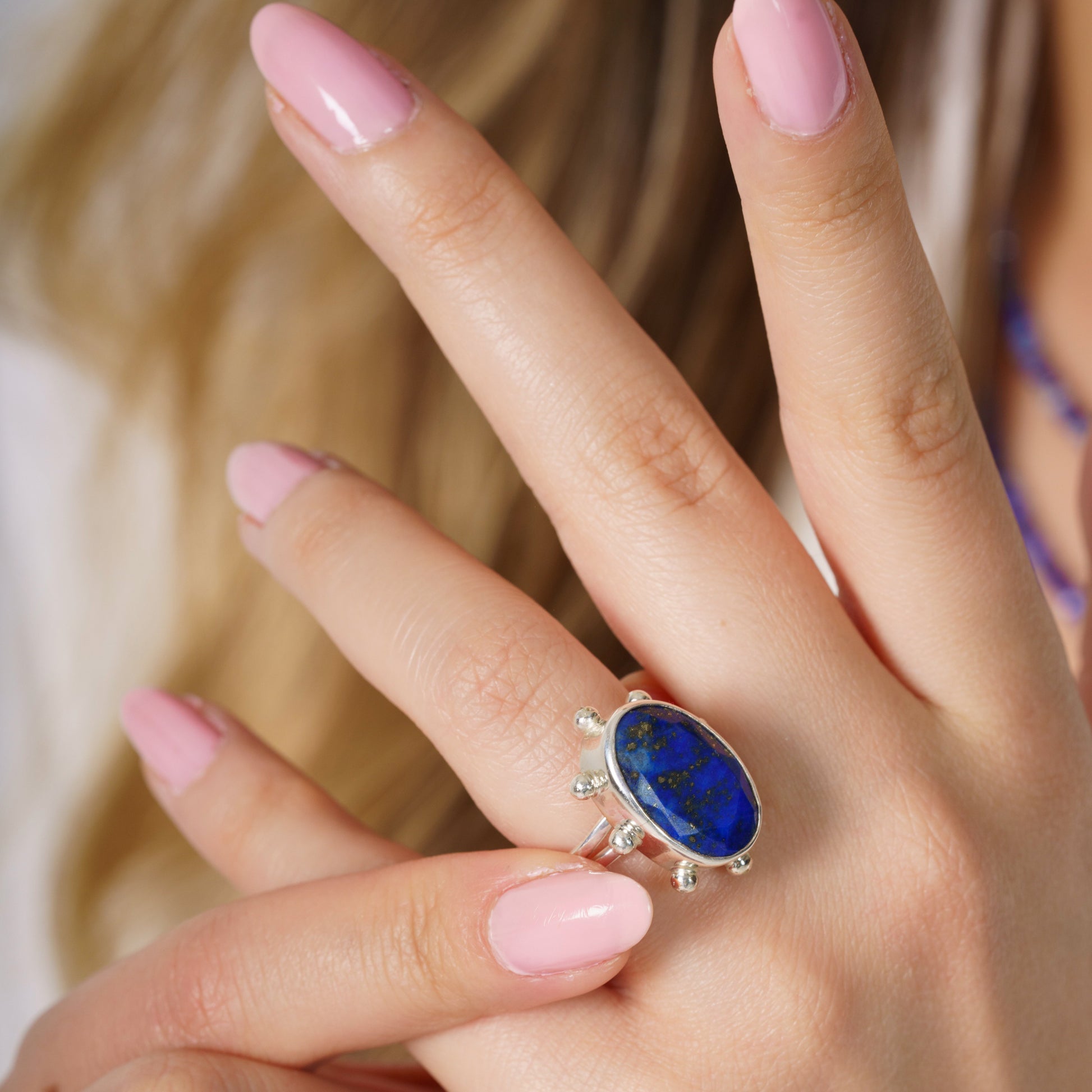 Experience the essence of summer with our Lapis Lazuli 925 Sterling Silver Ring. This handmade piece perfectly brings together the refreshing vibes of sea and sky with its striking lapis lazuli gemstone, perfect for those long, sun-soaked days. Its bold blue hue with golden flecks is reminiscent of those warm, sandy beaches and endless summer adventures. Whether you're enjoying a holiday or catching up with friends on a sunny day, this ring is a stylish statement for any occasion. Crafted to order, each 925 sterling silver ring features a naturally beautiful lapis lazuli stone, making it a one-of-a-kind treasure that's as unique as your summer experiences. The adjustable band ensures a comfortable fit, allowing you to wear it from day to night with ease. Imagine strolling along the beachfront or enjoying a warm summer evening with this stunning accessory adorning your hand. This ring is more than just jewellery; it’s a piece that embodies the carefree spirit of summer. Perfect on its own or paired with your favourite holiday outfit, it captures the sunny magical essence of the season. The excellent craftsmanship brings out the beauty in every 12mm x 10mm gemstone, making it a timeless addition to your summer jewellery collection. Give the gift of summer memories with this beautiful piece, or treat yourself to a symbol of the sunniest days. It’s a thoughtful present for anyone who loves to embrace the vibrancy of the season, whether they’re celebrating a birthday or simply enjoying the warmth and freedom of summer days and nights.