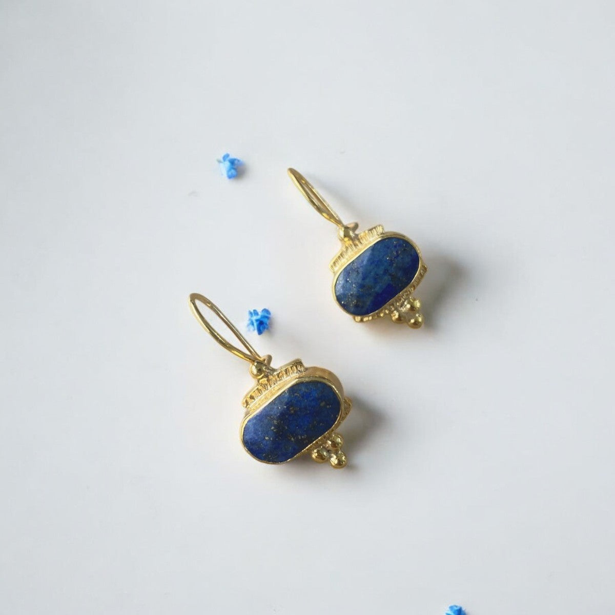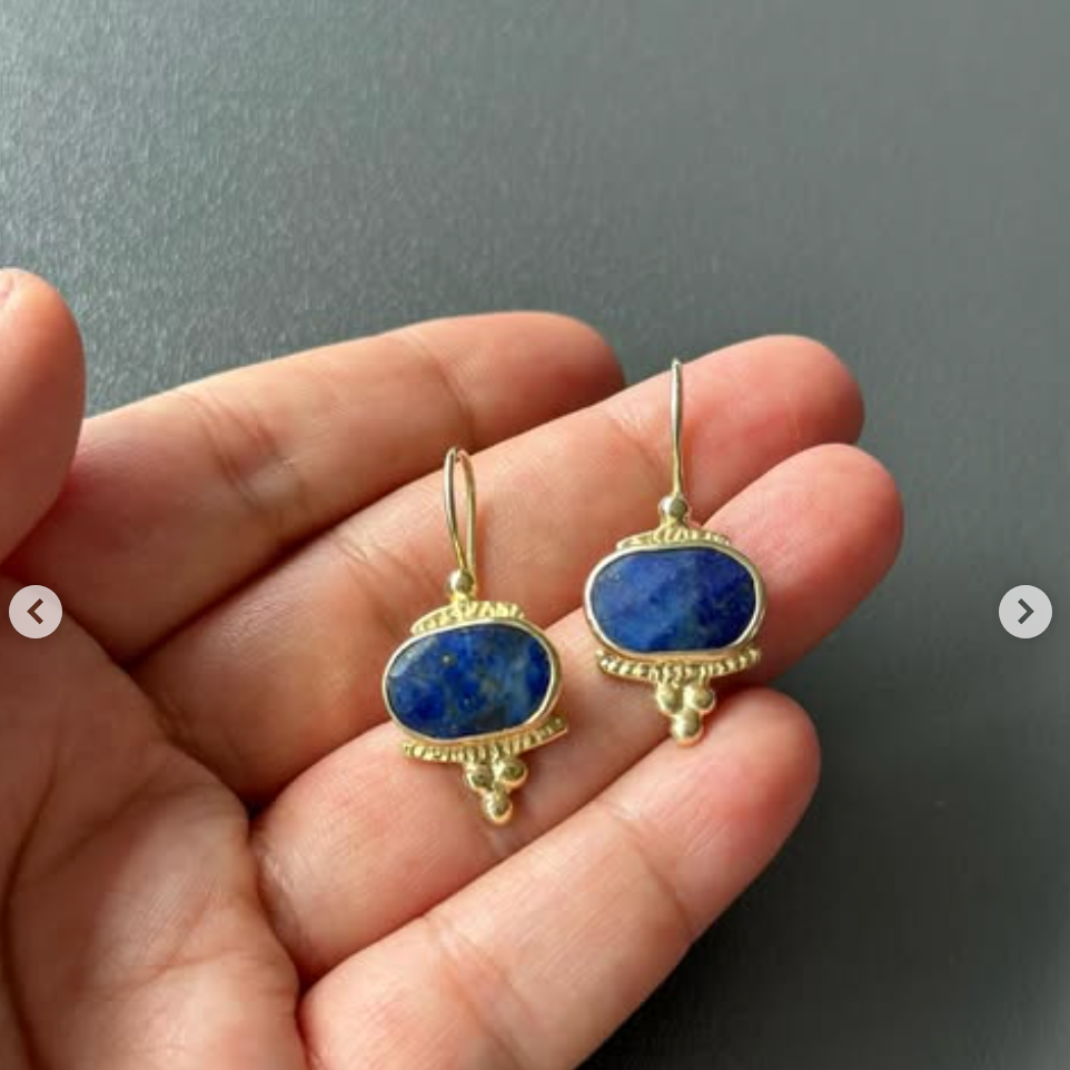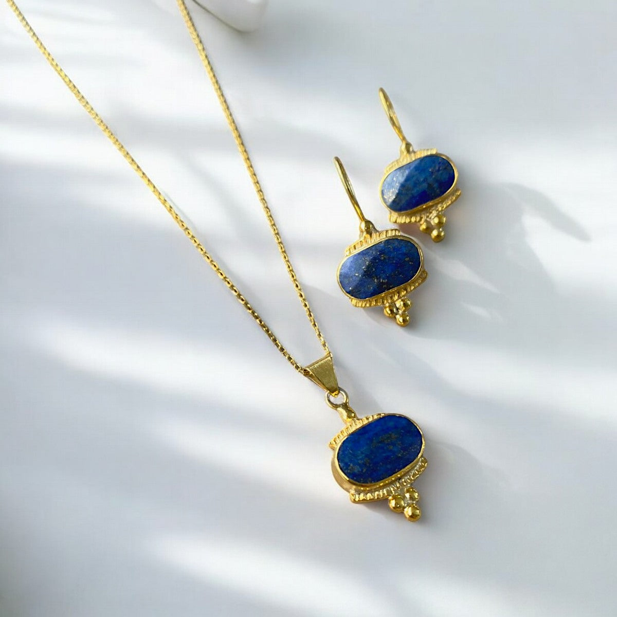 Lapis Lazuli Necklace and Earrings Set - 14k Gold Plated Silver