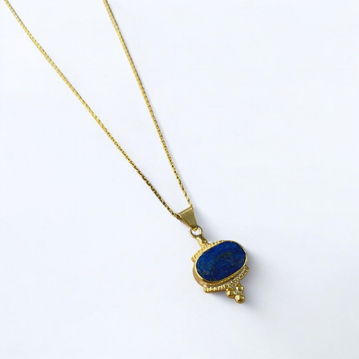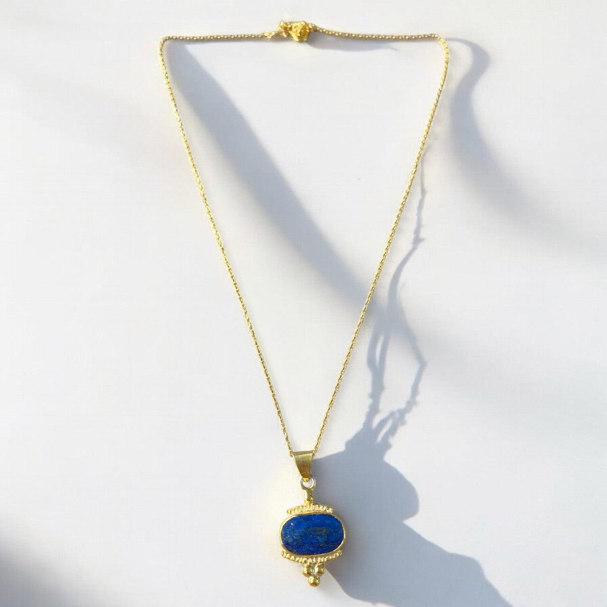 Embrace the sun-kissed days of summer with our exquisite Handmade Lapis Lazuli Pendant Necklace, designed to capture the essence of warm beaches and holiday elegance. This necklace combines genuine lapis lazuli gemstones with 925 sterling silver, all finished with a gleaming 14k gold touch. Whether you're strolling along the beach or enjoying a lively summer gathering, this piece will seamlessly elevate your look, embodying the spirit of timeless summer jewellery. This beautifully handcrafted necklace doesn’t just excel in style, but also in resilience. Made with meticulous attention, its craftsmanship and quality promise a long-lasting addition to your jewellery collection. The deep blue hue of the lapis lazuli is akin to the enchanting depths of the summer sea, making it a standout piece whether worn on a casual day trip or a festive evening out. At a versatile 40cm plus a 4cm extension, the necklace offers the perfect length for any summer neckline. Secured with a reliable lobster clasp, it sits comfortably so you can enjoy your holiday adventures with peace of mind. Its luxurious packaging options, either a vibrant pink box or a soft pink velvet pouch, make it an ideal holiday jewellery gift for any occasion under the sun. Let this necklace be the highlight of your summer jewellery collection, bringing a unique touch of elegance to your next beach getaway or holiday escape. Its bespoke charm transforms any outfit into a showstopper, celebrating the joy and beauty of summer days and nights. Dive into your summer wardrobe with this stylish necklace that promises to bring warmth and refinement to every holiday moment.