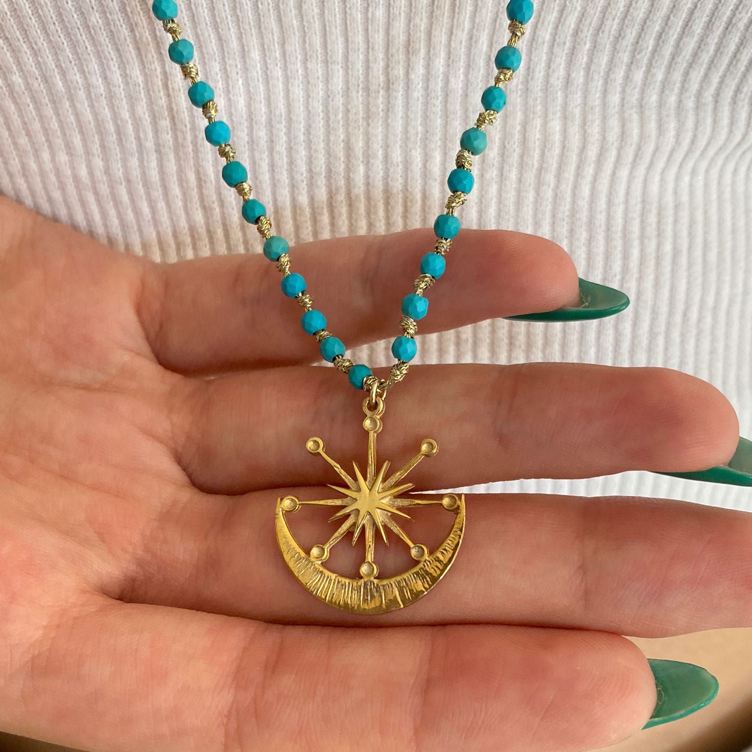 Long Artemis Necklace Knotted Turquoise Gemstones - 925 Sterling Silver