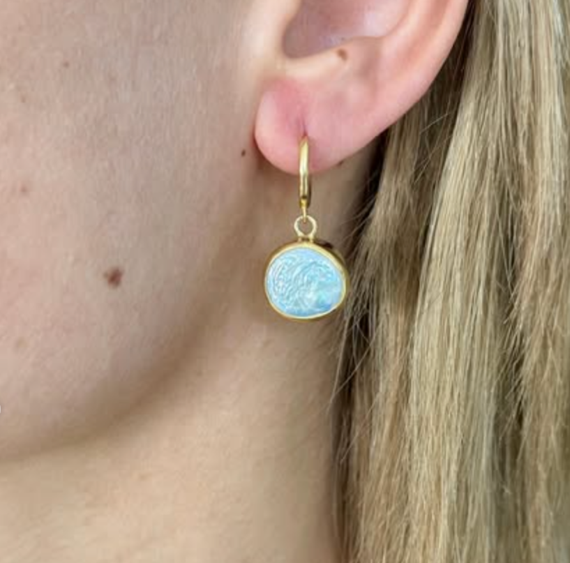 Discover the essence of summer with our Mother of Pearl Sterling Silver Drop Earrings. Handmade with care and attention to detail, these earrings feature shimmering 925 sterling silver, elegantly complemented by a delicate layer of gold plating. Their radiant glow makes them perfect for sunlit days at the beach or warm evenings spent with friends, capturing the essence of holiday jewellery that transitions seamlessly from day to night. The earrings' timeless charm is enhanced by the iridescent beauty of mother of pearl accents, evoking the serene colours of seaside landscapes. With a lightweight feel, you'll enjoy comfort on long summer days, whether you're strolling by the shore, attending an outdoor party, or dining at your favourite seaside restaurant. This summer jewellery is an essential accessory for any holiday wardrobe, designed to enhance any outfit with its delicate elegance. Featuring a secure fishhook clasp, these earrings promise peace of mind even on the most active summer days. Hypoallergenic materials ensure they're gentle on sensitive ears, so you can wear them with confidence all summer long. Beautifully crafted, these earrings are the epitome of sophistication, making them an excellent addition to your collection or a thoughtful surprise for someone special who's ready to embrace the holidays. Packaged in a charming pink box or a pink velvet pouch, they arrive ready for gifting, making them perfect for sharing the joy of summer. Whether you're looking for the ideal beach accessory, a lovely garden party adornment, or a statement piece for a summer barbecue, these earrings will make sure you shine bright through the season.