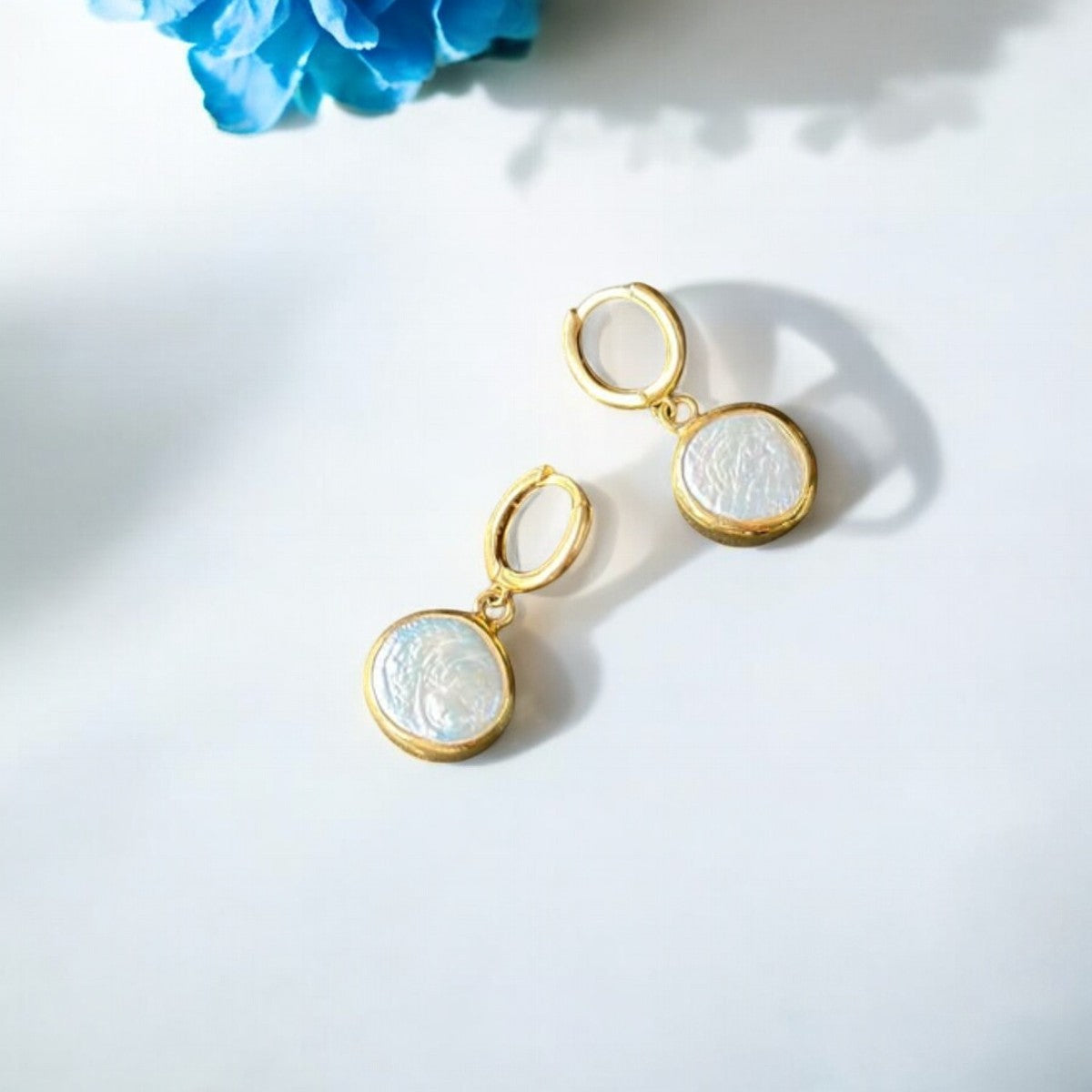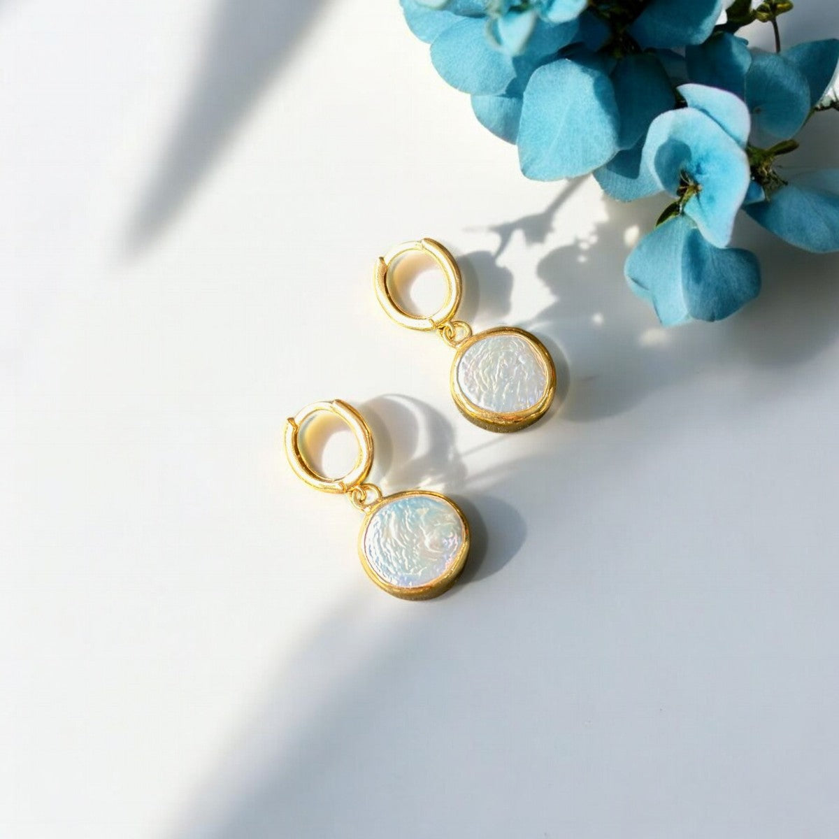 Mother of Pearl Silver Drop Earrings Gold Plated