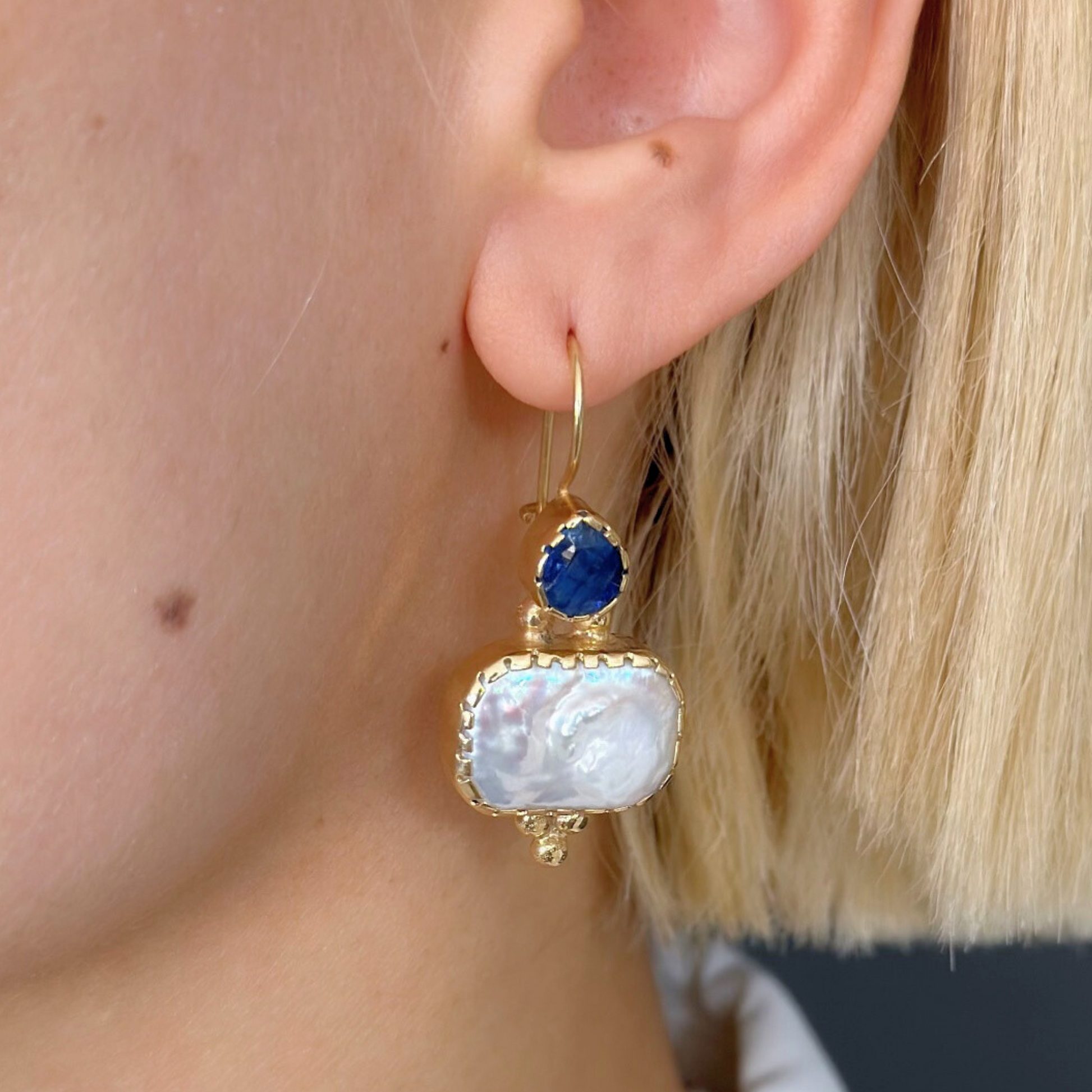 These gemstone earrings are inspired by the tranquillity and mystique of nature. Kyanite, celebrated for its ability to enhance communication and promote emotional balance, brings a deeper meaning to these elegant accessories. The serene blend of blue shades captures the essence of calmness and makes them a versatile addition to your jewellery collection.