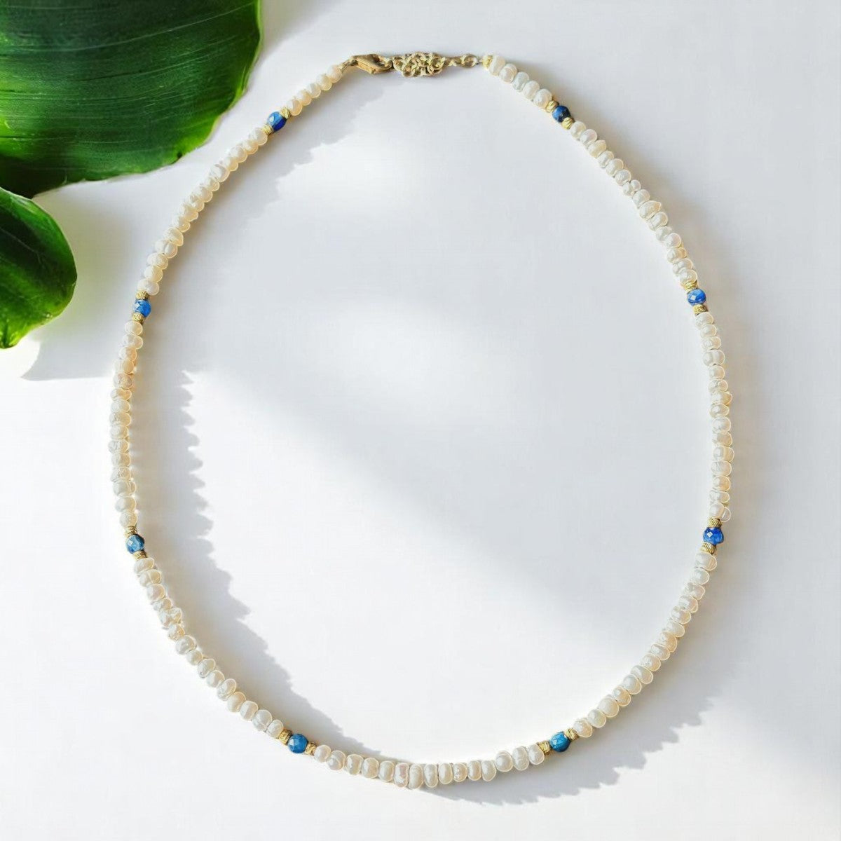 Pearl and Kyanite Gemstone Necklace Set in 925 Silver