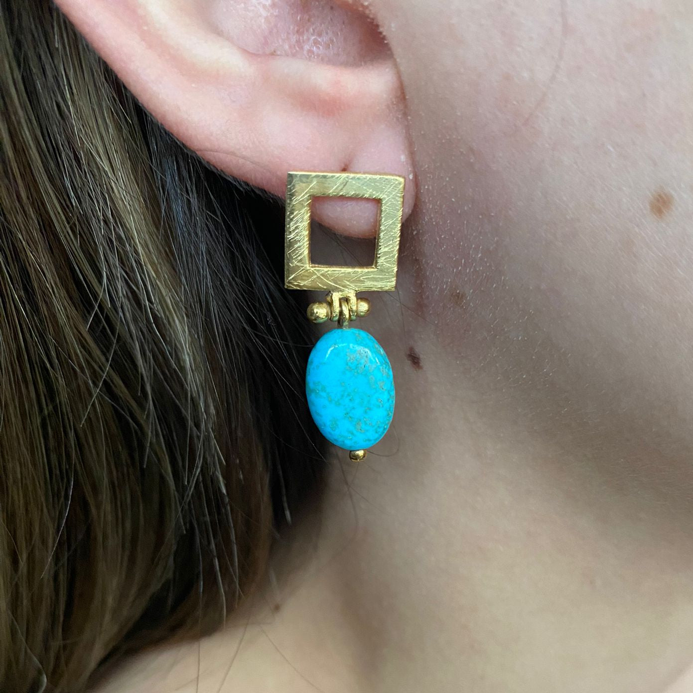 Indulge in a piece that offers both timeless elegance and modern charm. Let the enchanting aesthetics of our turquoise earrings enhance your style and create cherished memories. Their individuality is further heightened by the natural variations in the gemstones, ensuring that each pair is as unique as the person who wears them.